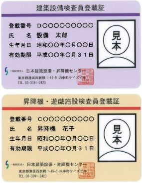 建築設備検査員等名簿登載・昇降機等検査員等名簿登載